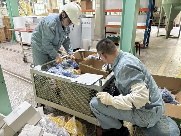使命间隙,他们迅速转换角色,俯身专注地协助综合组完成地线剪裁、压接等辅材制作,有用缩短生产辅材制作时间,提升生产效率;同时,亲近配合6S治理职员将新进物资按型号、用途详尽分类摆放,缩短了后续物资取用时间,让生产流程更顺畅。别的,吊叉组成员自动分担热塑管分类、剪裁等使命——他们深知,这些看似简朴的事情,正是包管后续生产有序开展的要害。这些点滴行动,不但推动了生产流程的优化升级,更让团队协作精神具象化:整体实力在分工与互补中迸发,既有锐意进取的效率,亦含温暖相助的温度。